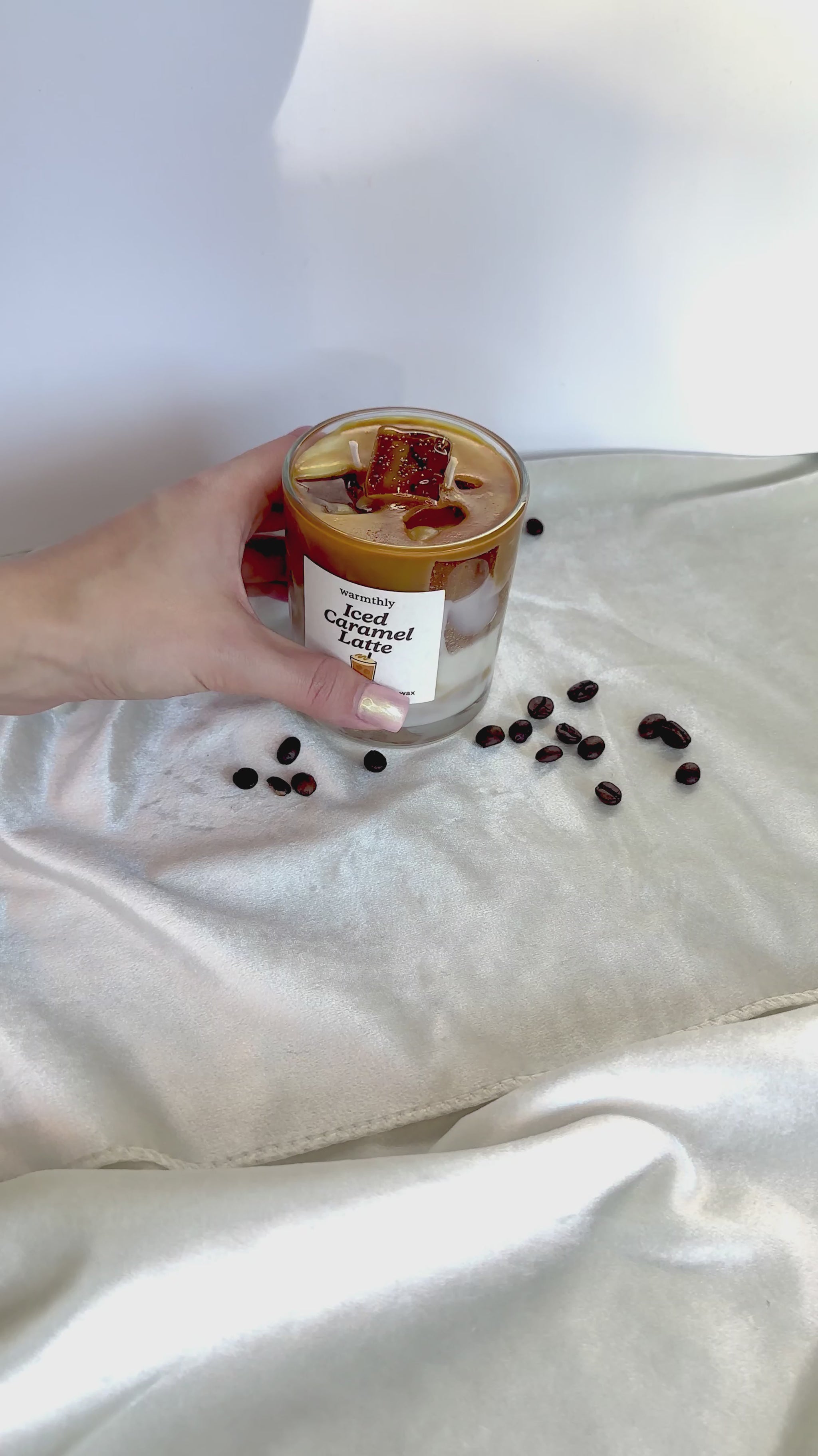 Unsere Iced Caramel Latte Kerze sieht aus wie ein echter Eiskaffee und duftet herrlich nach cremigem Karamell, frisch gebrühtem Kaffee und warmer Milch.